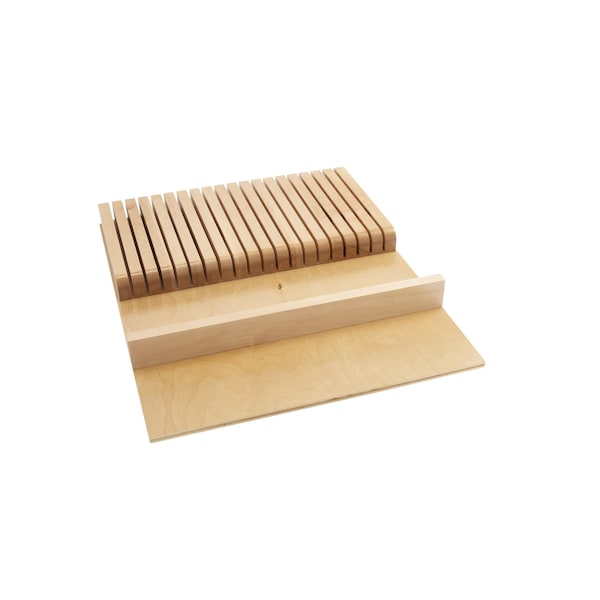 Rev-A-Shelf 4WKB-1 Trimmable 19 Slot Custom Knife Block Tray Kitchen Drawer Organizer Insert with Eating Utensil Holder Tray, Wood