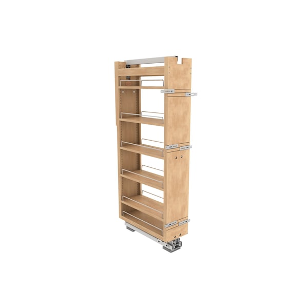 Maximize your storage space with this fabulous and functional Pullout Pantry. Riding on a Fulterer EZ close slide system with a top-guide rail, it has stability that is second to none. The natural maple frame and adjustable shelves are complemented by chrome rail accents and provide customization to accommodate your unique storage needs.