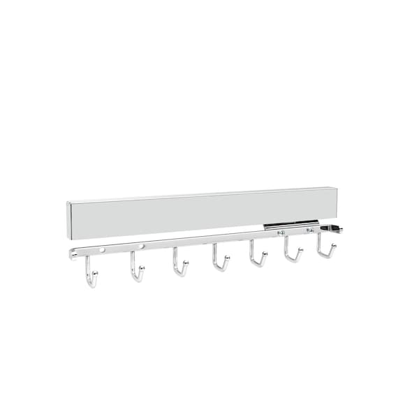 Offering easy to reach storage for your belts, the Deluxe Belt Rack complements our other deluxe accessories for storage of ties, scarves, and more. It stores against a closet panel and then slides out when needed from behind clothes on full-extension, ball-bearing, steel slides. See your collection of belts on this elegant rack featuring 7 hooks on a steel frame. It is available for 14" or greater depth panels in several luxurious finishes to match other Sidelines By Rev-A-Shelf® accessories.