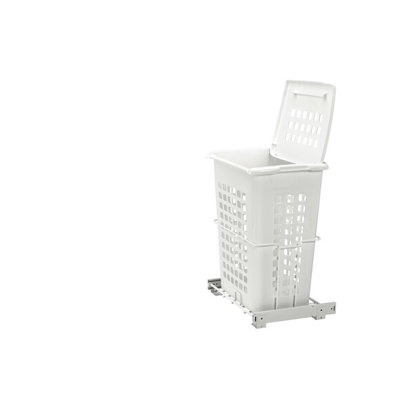 Keep dirty clothes from piling on the floor with the Rev-A-Shelf® large Pullout Polymer Hamper. The HPRV Series features a shallow 14" depth for closet applications, full-extension ball-bearing slides, 1.7 Bushels Capacity and installs with just four screws. This polymer hamper is available with or without a removable lid and with or without the Rev-A-Shelf® classic door-mount bracket kit.