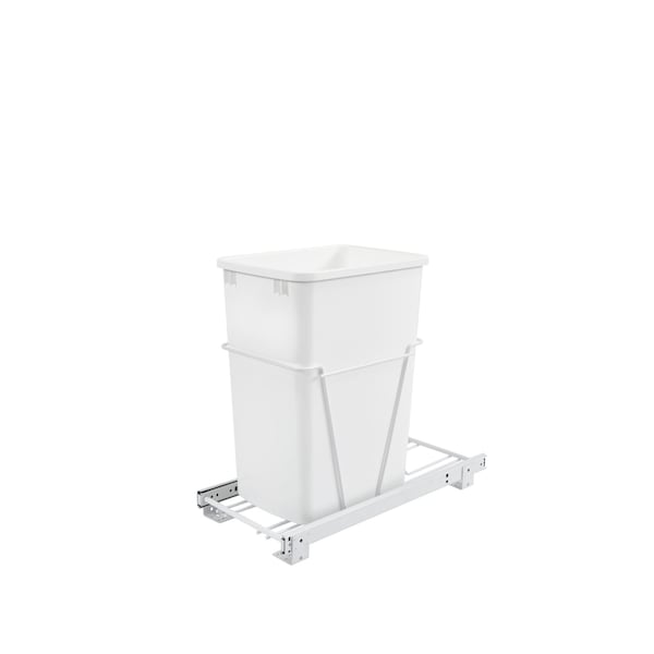 Rev-A-Shelf Single 35 Qt. Trash Can Pull-Out White Waste Container with 3/4 Extension Slides