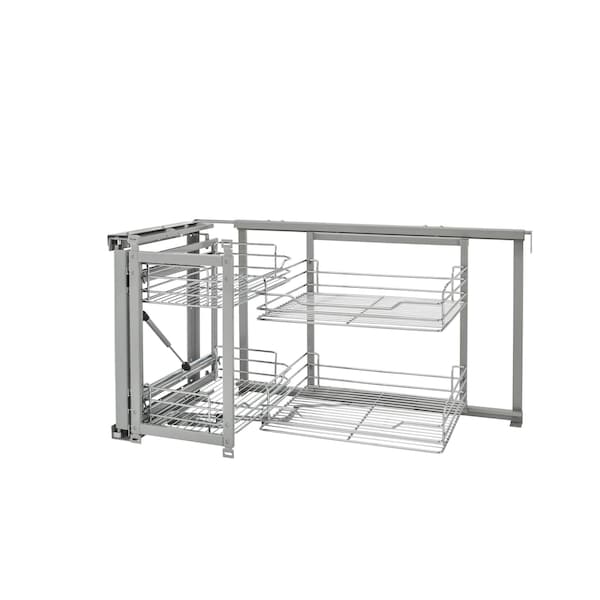 Blind corners brim with storage opportunities thanks to the state-of-the-art 5707 Series. Available for 15" and 18" cabinet openings. Two large and two small chrome-plated baskets accommodate a variety of items, and dynamic pivot sliding hardware provides easy access to areas once deemed unusable.