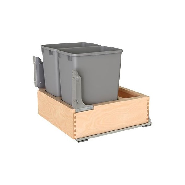 Waste Pullout 32QT Double Wood FE Soft-Close w/ Silver Bins