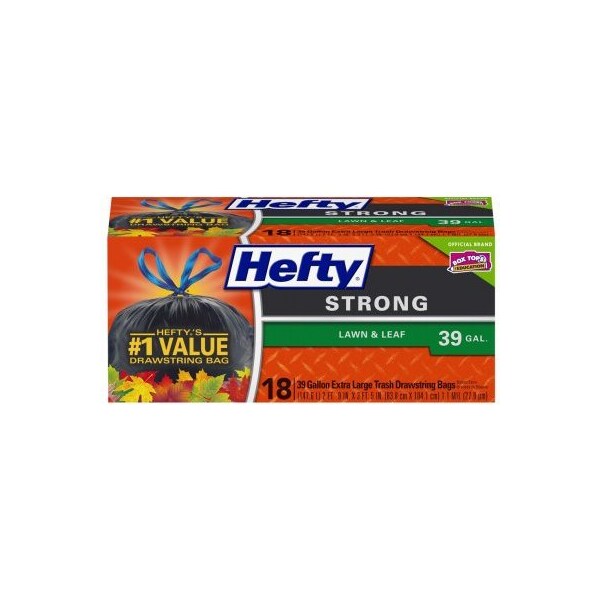 Hefty Strong, 18 Count, 39 Gallon, Lawn Leaf Bag, 33 x 41, 11 Mil