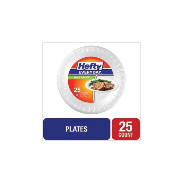 Hefty, Soak Proof Tableware, Foam Plates, 10 1/4in Dia, White, 28PK (Discontinued)