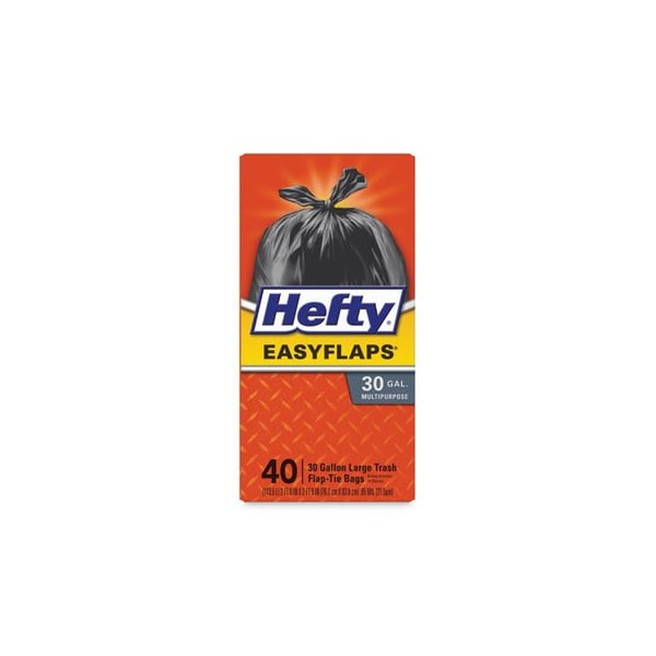 Hefty, EASY FLAPS TRASH BAGS, 30 GAL, 1.05 MIL, 30in X 33in, BLACK, 40PK