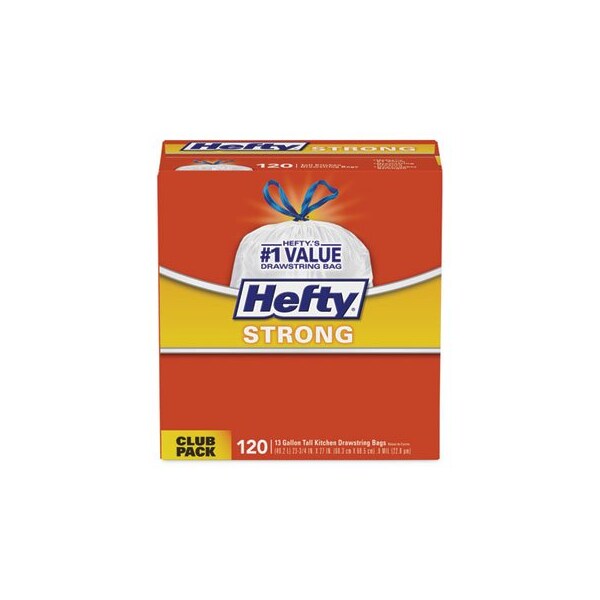 Hefty, STRONG TALL KITCHEN DRAWSTRING BAGS, 13 GAL, 0.9 MIL, 34in X 48in, WHITE, 90PK (Discontinued)