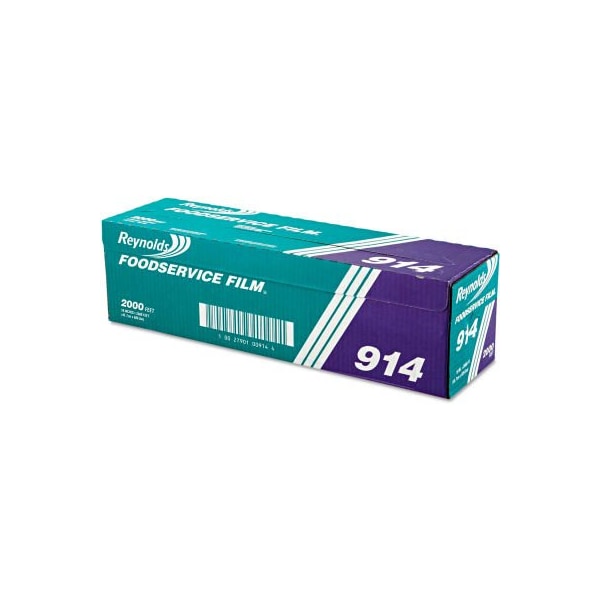 Reynolds wrap pvc film roll w/cutter box, 18" x 2000 ft., clear continuous length of plastic wrap is conveniently dispensed from a cutter box. Box features a low-profile precision metal edge. Safe and easy to use. Material(s): plastic; length: 2000 ft; width: 18"; packing type: box. this product arrives to most customers in 2-3 business days.