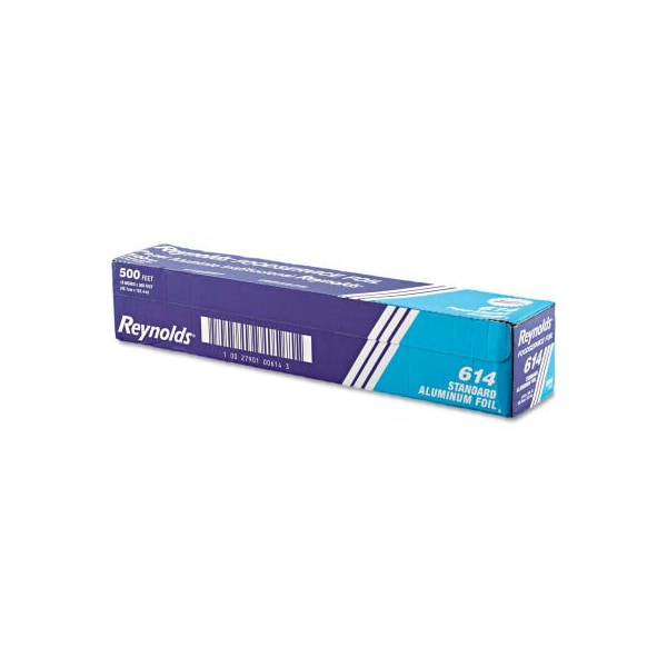 Reynolds wrap standard aluminum foil roll, 18" x 500 ft., silver can withstand both hot and cold foods. Made from 98.5% aluminum with the balance made up of iron and silicon, which are added to give greater strength and puncture resistance. Material(s): aluminum; length: 500 ft; width: 18"; packing type: box. this product arrives to most customers in 2-3 business days.