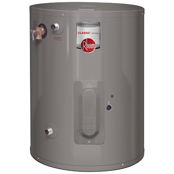 Electric Water Heater, Operating Voltage 120V, Phase Single, First Hour Rating Not Applicable, Maximum Recovery Flow Rate 15 gph @ 40 Degrees F, Overall Height 14 in, Overall Width 9.75 in, Power Consumption 1,440 W, Tank Capacity 3 gal, Tank Diameter 9.75 in, Market Residential, Number of Elements 1, Automatic Thermostat Yes, Cold Inlet Size 1/2 in, Cold Inlet Type NPT, Current 12 A, Electrical Connection Type Power Cord and Pl, Element Material Stainless Steel