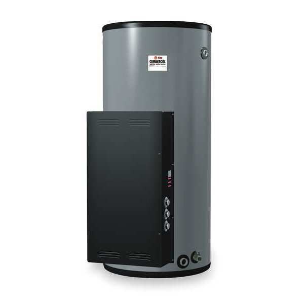 Electric Water Heater, Operating Voltage 240V AC, Phase Single, Three, Equivalent BtuH 61,420 BtuH, First Hour Rating Not Applicable, Maximum Recovery Flow Rate 149 gph @ 50 Degrees F, Overall Height 67.6 in, Power Consumption 18,000 W, Tank Capacity 120 gal, Tank Diameter 30.25 in, Market Commercial, Number of Elements 3, Automatic Thermostat Yes, Cold Inlet Size 1 1/2 in, Cold Inlet Type NPT, Current 75 A, Element Material Stainless Steel, Height to Cold Inlet 4.8 in