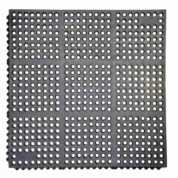E-Series Drainage Mat, Rubber, Drainage Holes, 3 ft W x 3 ft L, Black