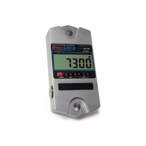 Msi msi-7300-5000 dyna-link 2 digital crane dynamometer, 5,000 lb x 2 lb the industry's most advanced digital tension dynamometer, the new and improved msi-7300, provides even more features and benefits than earlier dynamometer models. The new dyna-link 2 offers a lightweight, portable design for better handling, and superior viewing with its large 1 inch display. features: 6 digit 1" lcd display nema 4/ip65 enclosure for use in all environments 200% safe loading, 500% ultimate loading integrity crosby compatible shackle interface multi-feature programming and i/o connectivity two "c" alkaline batteries for capacities up to 10,000 lb. units of measurement: pound, kilogram, kilonewtons, tons & metric tons meets or exceeds osha, ansi, asme and other safety design standards (7:1 ultimate safety factor)