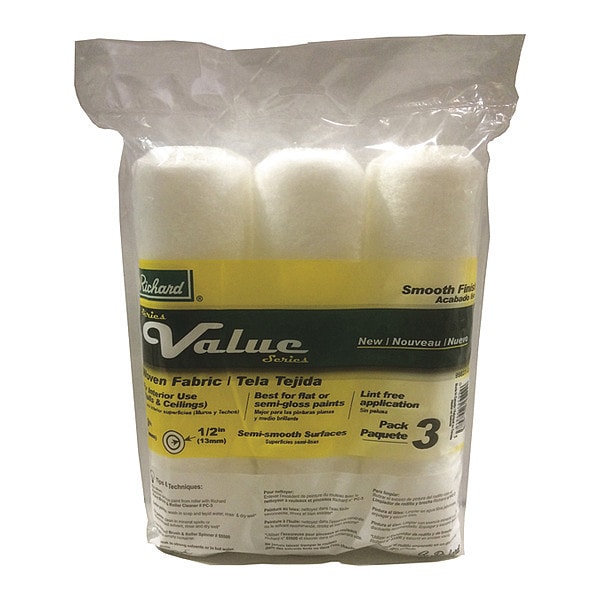 9" Paint Roller Cover, 1/2" Nap, Woven Fabric, 3 PK