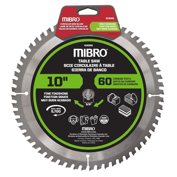 10-inch (254 mm) Carbide Tooth Circular Table and Miter Saw Blade