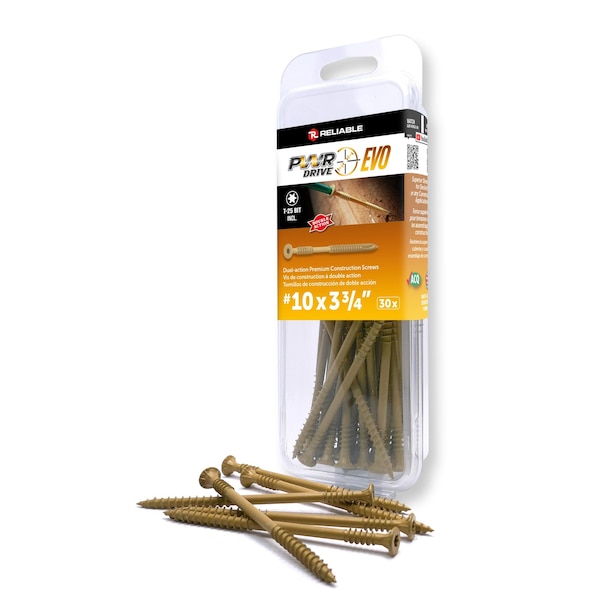 Power Drive is the New Premium line of screw products from Reliable. The PWR Drive EVO is the general construction screw from that line, used for decking, fencing or any framing applications. This screw has all the bells and whistles available today: Type 17 to prevent splitting, 3 level of under head nibs for the cleanest finish ever produced and a T-25 no slip sticky drive. The biggest difference of the EVO is its second thread. This thread being slower than the first one will produce a clamping effect simply impossible to obtain with any other screw on the market today. Plus, the EVO #10 x 5 and #10 x 6 in. with its very special thread design is especially designed for toe screwing assemblies angle very common in framing and has to be one of the most innovative ideas to hit the fastener market in the past 15 years. All EVO screws come with the same corrosion resistant coating that is used on our structural screws that is certified compliant with the IBC and IRC building codes. Watch the video and see the difference.