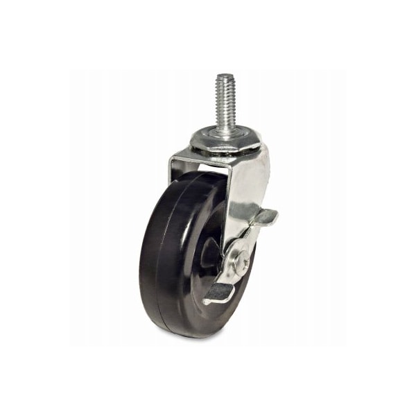 3 Black rubber wheel with brake stem caster