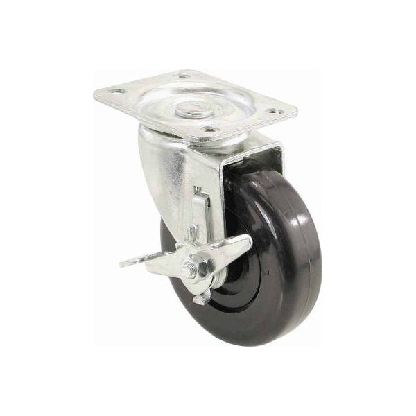 4, Polypropylene Wheel, Swivel Plate Caster With Side Friction Brake, 246 LB Load Capacity, Light Medium Duty, NonMarking Tread, LightWeight, NonMarking Wheels Impervious To Water With Good Chemical Resistance, Long Wearing Low In Cost, Bulk