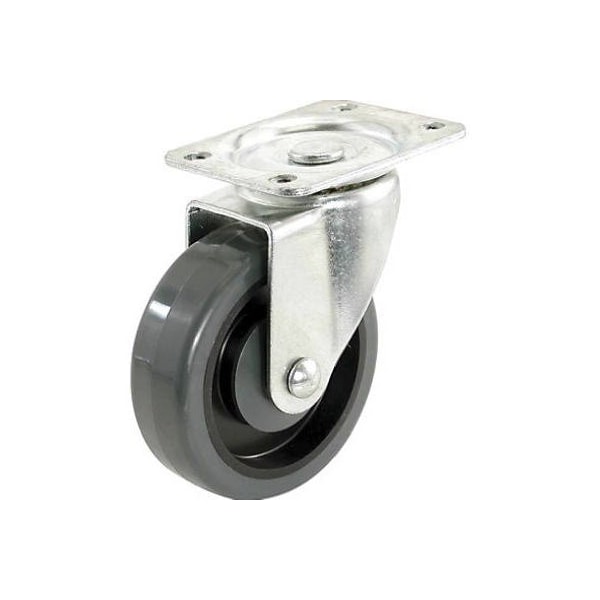 400 Series, 4, Polypropylene Swivel Plate Caster, 246 LB Load Capacity, Plate Size Of Holes 175 x 290, Gray Thermoplastic Rubber Tread On Black Polypropylene Hubs, Offers A Soft Cushioned Ride Are Quiet, Excellent Flat Spot Resistance Is Resistant To A Broad Range Of Chemicals, Acids, Solvents Detergents, NonMarring Performs Well In Wet Corrosive Conditions, Very Good Floor Protection Impact Resistance, Temperature Range 180 Degrees Fahrenheit To 40 Degrees Fahrenheit, Durometer 80a 5, Bulk