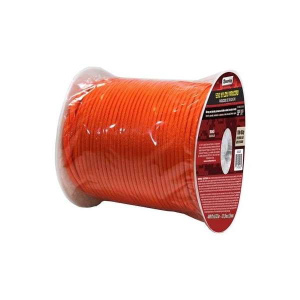 532 x 400', Orange, Military Grade 550 Paracord, Bulk Reel, 110 LB Safe Working Load, Max Load Is 550 LB, Great For Shelter Building, Hunting Shoelaces, Abrasion Mildew Resistant, Durable, Ties Easily Secure