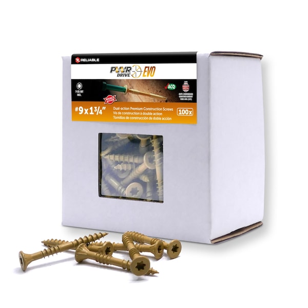 Power Drive is the New Premium line of screw products from Reliable. The PWR Drive EVO is the general construction screw from that line, used for decking, fencing or any framing applications. This screw has all the bells and whistles available today: Type 17 to prevent splitting, 3 level of under head nibs for the cleanest finish ever produced and a T-25 no slip sticky drive. The biggest difference of the EVO is its second thread. This thread being slower than the first one will produce a clamping effect simply impossible to obtain with any other screw on the market today. Plus, the EVO #10 x 5 and #10 x 6 in. with its very special thread design is especially designed for toe screwing assemblies angle very common in framing and has to be one of the most innovative ideas to hit the fastener market in the past 15 years. All EVO screws come with the same corrosion resistant coating that is used on our structural screws that is certified compliant with the IBC and IRC building codes. Watch the video and see the difference.