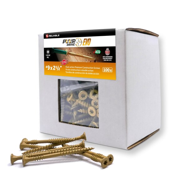 Power Drive is the New Premium line of screw products from Reliable. The PWR Drive EVO is the general construction screw from that line, used for decking, fencing or any framing applications. This screw has all the bells and whistles available today: Type 17 to prevent splitting, 3 level of under head nibs for the cleanest finish ever produced and a T-25 no slip sticky drive. The biggest difference of the EVO is its second thread. This thread being slower than the first one will produce a clamping effect simply impossible to obtain with any other screw on the market today. Plus, the EVO #10 x 5 and #10 x 6 in. with its very special thread design is especially designed for toe screwing assemblies angle very common in framing and has to be one of the most innovative ideas to hit the fastener market in the past 15 years. All EVO screws come with the same corrosion resistant coating that is used on our structural screws that is certified compliant with the IBC and IRC building codes. Watch the video and see the difference.