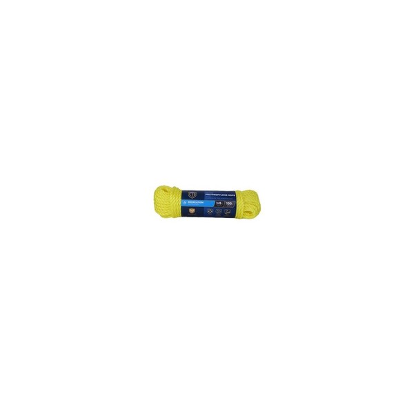 3/8in x 100ft, Yellow, Polypropylene Rope, 245 LB, Safety Work Load, Diamond Braided, Light Weight & Floats, Hank.