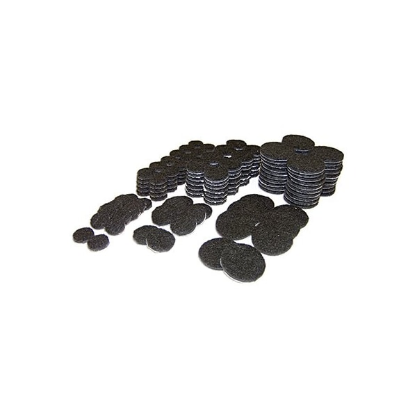 TruGuard, 184 Pack, Black Round Heavy Duty SelfAdhesive Felt Pads, Includes 72 Pieces 34, 64 Pieces 1, 48 Pieces 112, Quick ReSealable Rigid Container, Easy To Install, Protects Flooring Against Scratches, Wear, Ideal For Hardwood, Linoleum, Vinyl, Ceramic, Tile, Terrazzo, Marble
