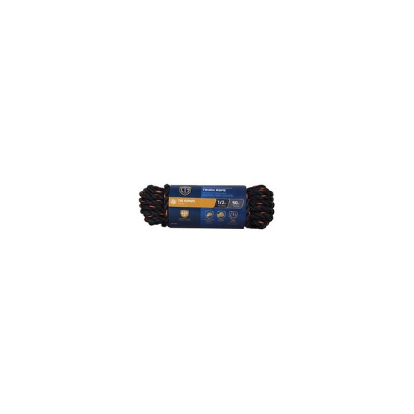 Truck Rope, Twisted Polypropylene, Black & Orange, 1/2-In. x 50-Ft.