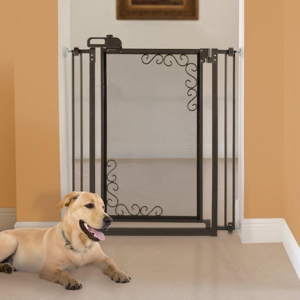 32.5-36.5 x 2.4 x 40 in. One-Touch Metal Mesh Pet Gate - Black - Tall