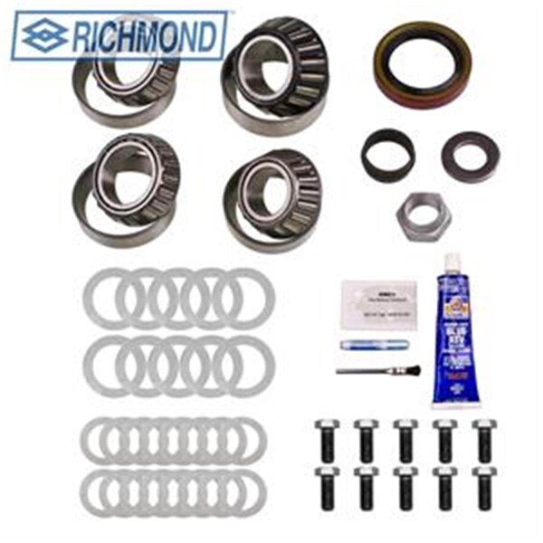 Half kits include pinion shims and seal crush sleeve and cover gasket. Complete kits include pinion shims seal timken bearings nut washer crush sleeve cover gasket or gasket sealer ring gear bolts and washers thread locker marking compound and application brush. Mega kits include pinion shims seal timken bearings nut washer crush sleeve cover gasket or gasket sealer ring gear bolts and washers axle bearings and seals thread locker marking compound and application brush. Features -Gm 8.2in bop -Bearing kit includes timken bearings carrier front and rear pinion pilot where applicable brush cover gasket or rtv crush sleeve or preload shim pack marking compound pinion nut pinion seal and thread locking compound Applicable to: -1964 1972 buick electra -1970 1972 buick gs -1968 1969 buick gs 350 -1968 1969 buick gs 400 -1970 1972 buick gs 455 -1965 1967 buick gran sport -1964 1972 buick skylark -1964 1972 buick sportwagon -1964 1967 oldsmobile 442 -1964 1967 oldsmobile cutlass