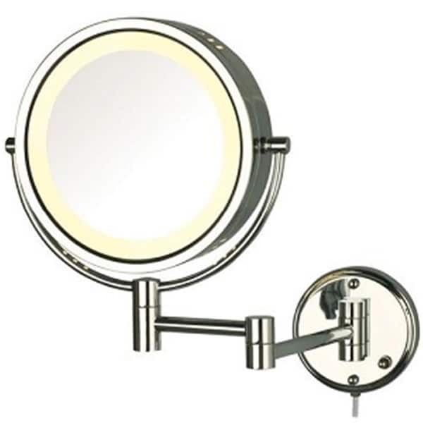 8.5 in., 8x-1x Halo Lighted Wall Mount Mirror, Extends 13.5 in., Chrome