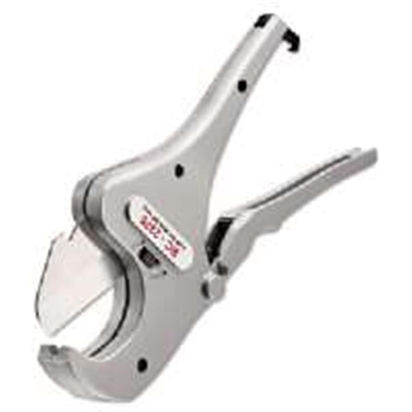 Ergonomic grips on bottom handle are spaced at 1/2 in. increments to act as a quick pipe measuring scale. Easy turn-thuMB latch for reliable storage. X-CEL quick change blade. Features Type - Pliers and Cutters-Tube/Pipe Cutter Application - Automotive Maintenance, General Maintenance, HVAC, Plumbing, Refrigeration Applicable Material - CPVC, PEX, Polyethylene, Polybutylene, PVC, Rubber Jaw Material - Aluminum Mechanism - Ratcheting Handle Material - Aluminum Handle Type - Scissor Lever Finish - Aluminum Cut Type - Straight Cut Direction - In-Line With Tool Cutting Capacity - 1/2 to 2 3/8 in. Item Weight - 11 lbs.