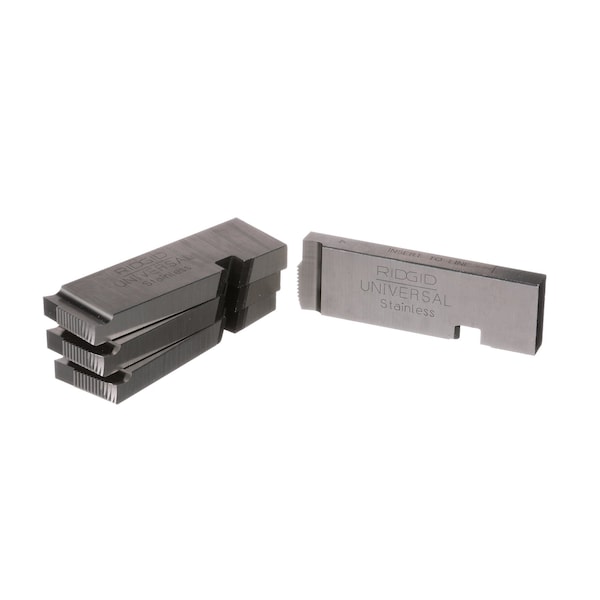 Replacement Pipe Die, Compatible Pipe Size 1/4 in to 3/8 in, Compatible Material Type Stainless Steel, Thread Type NPT, Compatible Thread Direction Right Hand, Die Material High Speed Steel, Die Head Compatibility Ridgid Machine Universal, Compatible Threader Series 1215, 1224, 300, 535, Application Pipe, Number of Dies 4, Threads Per Inch 18, Compatible Threader Type Threading Machine, Compatible Die Head Grainger Part Number 4CW40, 4Z974, 5A195