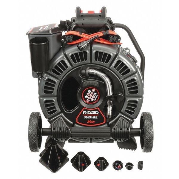 Pipe Inspection Camera Reel, Product Type Camera Reel, Maximum Pipe Capacity 6 in, Minimum Pipe Capacity 1 1/2 in, Cable/Push Rod Length 200 ft, Camera Type Fixed, Camera Diameter 1 in, Power Source Monitor (Not Included), Cable Diameter 0.31 in, Cable Type Abrasion Resistant Wrapped Inner Core With Integrated Power/Video Signal, Camera Material Stainless Steel, Camera Water Resistance Depth 225 ft, Connector Type Waterproof, Universal 3-Pin