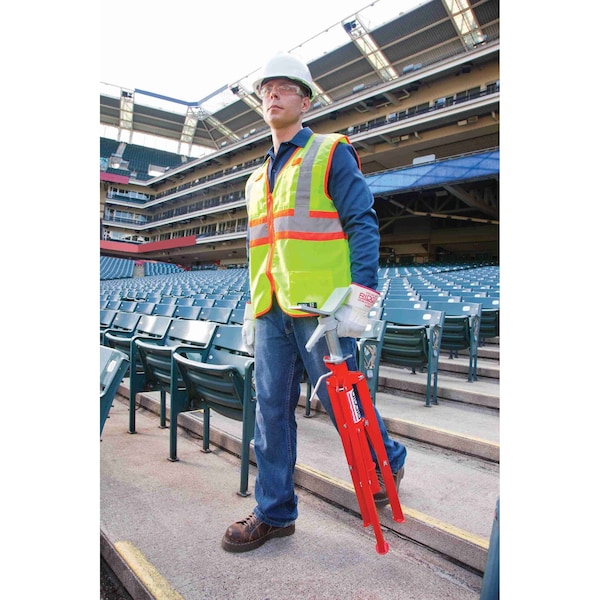 V-Head Pipe Stand, Head Type V Head, Compatible Pipe Material Metal, Minimum Pipe Size 1/8 in, Maximum Pipe Size 12 in, Number of Rollers 0, Maximum Load Capacity 2,500 lb, Includes Legs Yes, Minimum Height 28 in, Maximum Height 51 in, Maximum Leg Spread 23 1/2 in, Leg Style Folding, Features Locking Ring Allows for Quick Vertical Height Adjustment, Tool Weight 24 lb