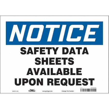 Notice, MSDS Available Upon Request, 14 in W x 10 in H, Horizontal Rectangle, Reflective Sheeting