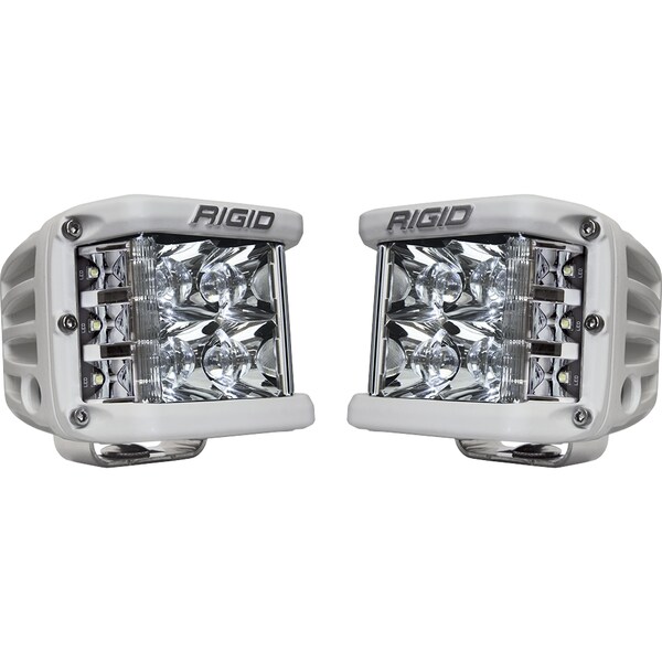 D-SS Series PRO Spot LED Surface Mount - Pair - White. One of RIGID's most versatile, compact lighting solutions just got better with the RIGID D-SS PRO, Dually-Side Shooter Professional Race Output LED pod. Perfect for any application that requires a wide spread beam, including A-Pillars, Fog Lights, and motorcycle applications. The D-SS PRO incorporates powerful optics and recently improved LED technology for greater output with the added benefit of additional LEDs aimed to the side for a much broader beam. The D-SS PRO packs a powerful punch with up to 102% more raw lumens depending on the optics chosen The D-SS PRO fixtures boast up to 120-degrees of horizontal lighting coverage when used in pairs or when used in the single light applications. The main forward-facing LEDs are available with RIGID's advanced Spot, Flood, or Driving optics, so there's a D-SS PRO lighting solution for nearly any application. The D-SS PRO LED lights are available in pairs with three side-shooting LEDs on one side of each fixture, or in single applications with a pair of side-shooting LEDs on both sides of the fixture. Only RIGID provides a broad, powerful lighting solution in such a compact package.. Features: Family: D-SS Side Shooter
