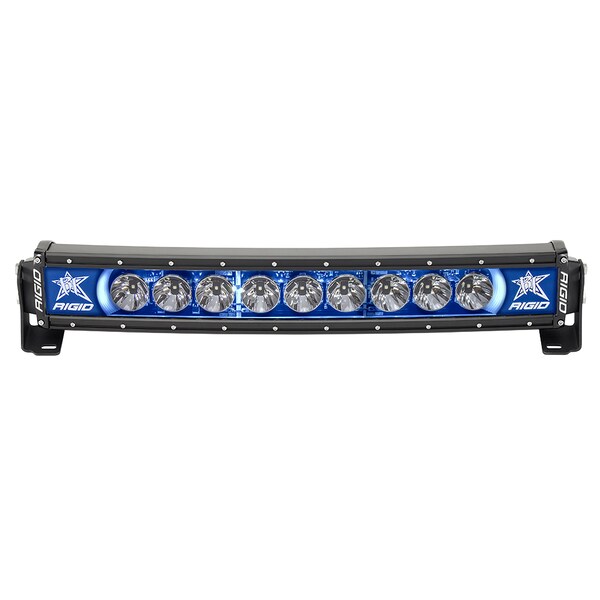 Radiance+ 20" Curved Blue Backlight Black Housing. RIGID Radiance Plus light bar is the perfect solution for those who want RIGID' s legendary quality at a level everyone can attain. Featuring RIGID' s improved LED technology, the Radiance Plus light bars deliver up to 35% more raw lumens than before. The RIGID Radiance Plus bars are built with the same high-grade aluminum alloy housing as our legendary E-Series bars, but that' s where the visual similarities end. Inside, the Radiance Plus bars are feature-packed, with a black exposed circuit board, optimized forward projecting Broad Spot optics that combine the attributes of a spot and flood beam pattern. Further, the Radiance Plus bars have built-in back-lighting available in white, amber, red, blue and green. Large back-lit and recently updated RIGID branding plates further add to the unique look of the Radiance light bar. Even better, the Radiance Plus light bars now include a wiring harness and multi-trigger switch for a quick and painless installation. The RIGID Radiance Plus light bar is for the customer who wants a truly custom look that only RIGID can provide.. Features: Independently Controlled Back-Lighting Available in White, Amber, Red, Blue, or Green. Dedicated Wire to Run Back-Lighting without Primary LEDs. Black Exposed Circuit Board. E-Series Construction & Durability. Black Powder Coated Mounting Brackets. 50,000+ Hour Lifespan. 10-15 VDC. Impact Resistant Polycarbonate Lens. Integrated Thermal Management System What's Included? Mounting Hardware. Black Powder Coated, L-Shape Brackets. Open Leads, No Connector. 2ft Wire Extension (20" - 50" ). Complete Multi-Switch Wiring Harness (PN 40200).
