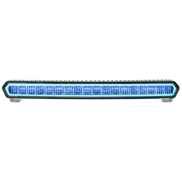 SR-L Series 20" Off-Road LED Light Bar - Black with Blue Halo Back Lighting. Accent lighting is an easy way to customize the look of any vehicle, and RIGID now offers a way to add style and function with the SR-L Series Light Bar. This 20" Light Bar offers users the latest LED technology paired with advanced optics to provide an ultra-wide 70-degree beam pattern suitable for lighting up the trail ahead. In addition, the SR-L Series Light Bar offers halo backlighting available in four colors: red, blue, amber, or white. The halo provides a stylish accent color to any custom vehicle build, while the hidden mounting hardware and glossy outer trim further adds to the light bar' s sleek look. A 3-position switch is included, allowing the user to easily switch between the halo accent lighting to the forward-projecting light. The SR-L Series offers the same legendary RIGID build quality as the rest of the company' s products, from the high-grade aluminum housing to the impact resistant polycarbonate lens. Packed with power and style, the SR-L Series makes it easier than ever to Own the Night.. Features: 50,000+ Hr LED Lifespan. Instant On/Off - No Warm Up. RoHS Compliant. Over / Under Voltage Protection. Durable Polycarbonate Lens. Integrated Thermal Management. Pressure Equalizing Vent. Designed & Engineered in the USA. Wiring Harness and Switch Included. 9-36 VDC. Stealth Mounting Location. Removable Surround for Color Matching.
