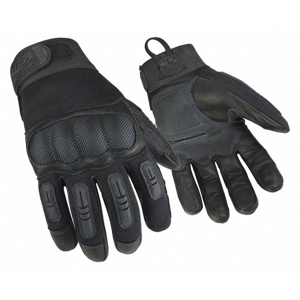 Tactical Glove, Goatskin Leather Palm, 10" Length, Hook-and-Loop Cuff, Full Finger, Unlined Lining
