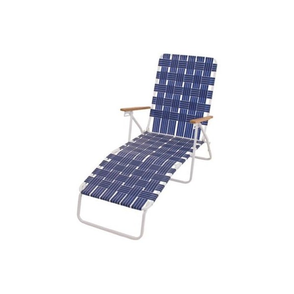 Hi Back, Folding Web Chaise Lounge, White Powder Coated Steel Frame, Blue Woven Webbing Hardwood Arms, 240 LB Weight Capacity, Seat Height 105, Seat Width 2125, Seat Depth 425, Back Height 285, Back Width 2125