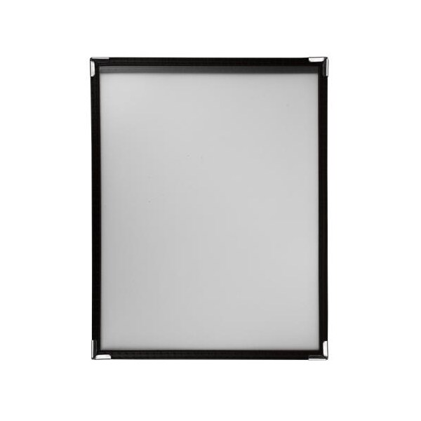 Menu cover; 8 1/2 in (W) x 11 in (L); Vinyl cover with leatherette trim; Silver smooth corners; Single pocket; 2 views; Scratch resistant