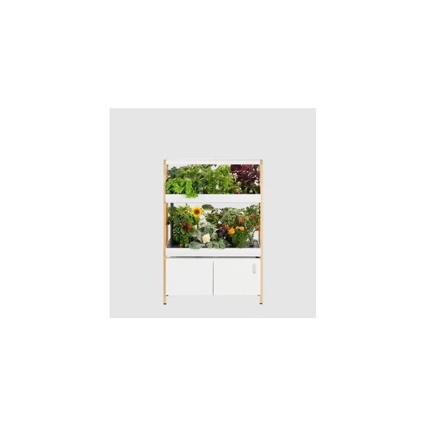 Solid Wood Frame. Steel Cabinets and shelves built to last. Robust circular water system ensuring your plants get the nutrients when they need it. Easy-to-use companion app guides you through growing from seed to harvest.