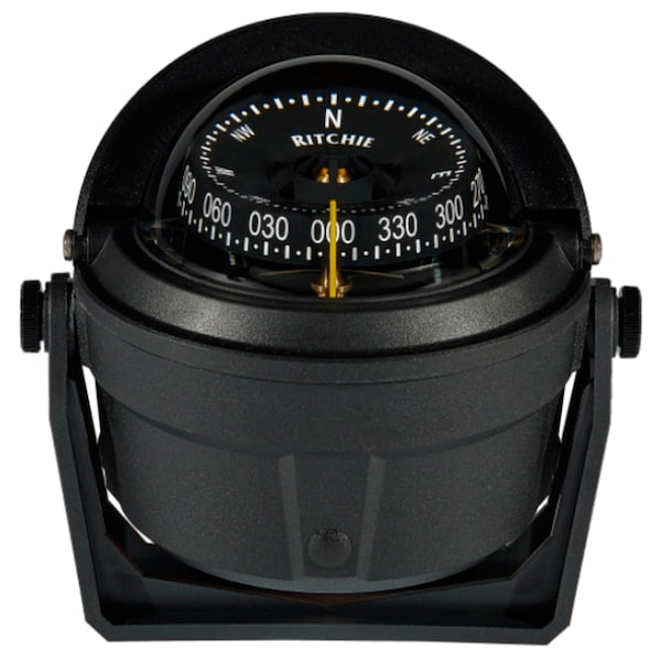 Ritchie B-81-WM Voyager Bracket Mount Compass - Wheelmark Approved f/Lifeboat & Rescue Boat Use. The Wheelmark approval is for Lifeboat and Rescue boat compasses. These compasses are also suitable for sailboats, power boats and motor sailing vessels., Features: Wheelmark Certification, 3" CombiDamp Dial, 12V Green LED Lighting, Adjustable and Removable with Bracket and Thumbscrews, Built-in Compensators to Easily Adjust for Deviation, Scientifically Matched Sapphire Jewel and Hardened Steel Pivot Dial Movement, Powerful DirectiveForce Magnets for Fast Heading Lock-on, Movable Sun Shield, High Temperature Composite Construction for Extended Operating Range, 100% Repairable,