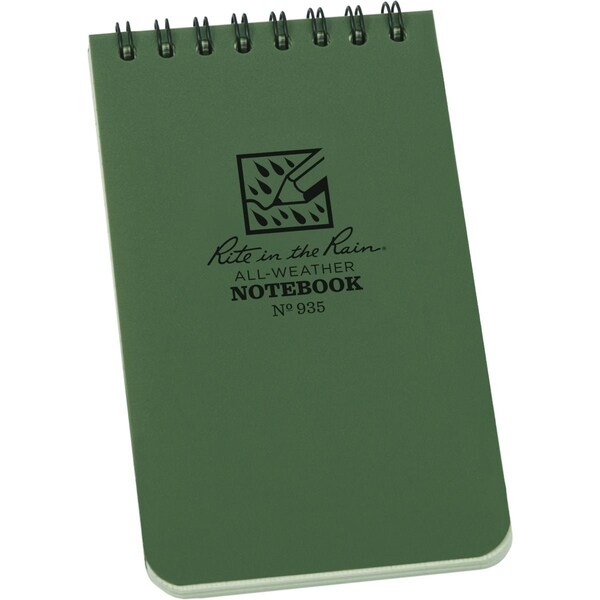Pocket notebook is conveniently sized and tough enough to survive any of Mother Natures onslaughts. Notebook repels water oil grease and more. Works with Rite in the Rain all-weather pens/pencils wax markers and crayons in wet or dry applications. Permanent markers and standard ballpoint pens work under dry conditions. Will not work with gel pens most highlighters fountain pens or water colors. Paper is wood-based recyclable and survives rain heavy sweat mud & grime heat & humidity oil & grease sleet & snow fog & mist. Inside cover includes convenient measurement guides. Universal page pattern allows notebook to be used for journaling or graphing. Mini ruler included on the back of the notebook for quick measurements.