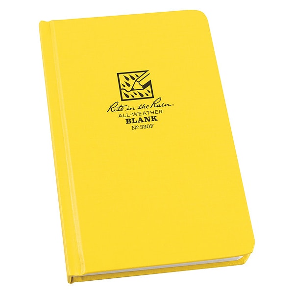 All Weather Notebook, Cover Color Yellow, Cover Material Fabrikoid, Binding Nonwirebound, Backing Fabrikoid, Sheet Size 4-3/4 in x 7-1/2 in, Rule Blank, Paper Color White, Paper Weight 32 lb