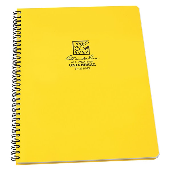 All Weather Notebook, Cover Color Yellow, Cover Material Polydura, Binding Wirebound, Backing Field Flex, Sheet Size 8-1/2 in x 11 in, Rule Universal, Paper Color White, Paper Weight 32 lb, Features Polydura Cover