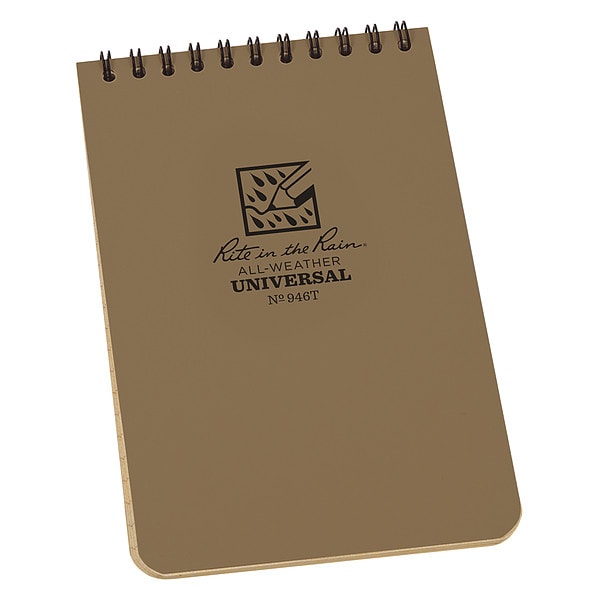 All Weather Notebook, Cover Color Tan, Cover Material Polydura, Binding Wirebound, Sheet Size 4 in x 6 in, Rule Universal, Paper Color White, Paper Weight 20 lb, National Stock No. NSN - 7530-01-505-3660