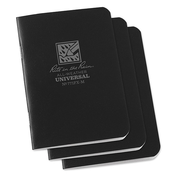 All Weather Notebook, Cover Color Black, Cover Material Field Flex, Binding Nonwirebound, Sheet Size 3-1/4 in x 4-5/8 in, Rule Universal, Paper Color Gray, Paper Weight 32 lb, Includes Reference Page, Ruler, Package Quantity 3